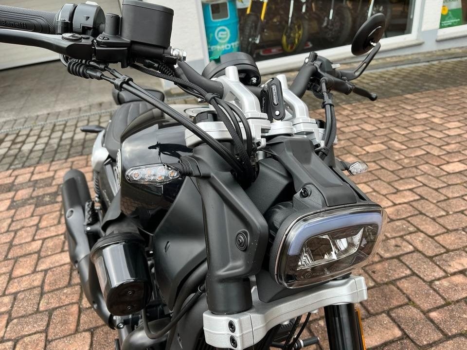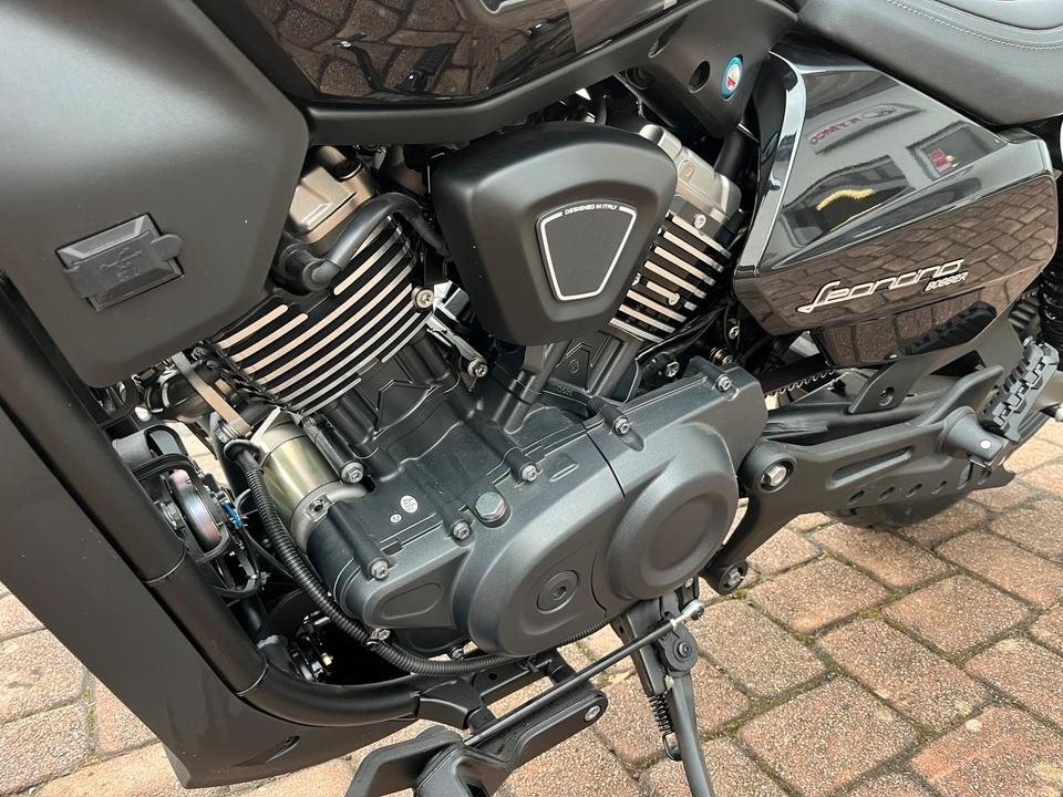 Erstmals verbaut Benelli einen 60- V2-Motor (Euro 5+), der mit Details wie Zierkuehlrippen und einem transparenten Luftfilter auch optisch Akzente setzt. Technisch ueberzeugt die Bobber mit Riemenantrieb, Traktionskontrolle, Lenkerendenspiegeln und minimalistischem Digitaldisplay. Die vorverlegten Fussrasten sorgen fuer eine entspannte Cruiser-Sitzposition.