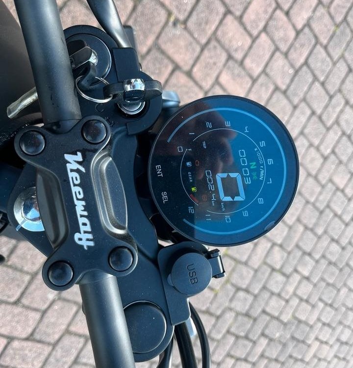 Die beleuchtete Digitalanzeige verleiht diesem Motorrad im Vintage-Stil ein modernes Flair und Funktionalitat. Es verfugt uber einen USB-Anschluss, uber den Sie Ihre kleineren Gerate unterwegs aufladen konnen.