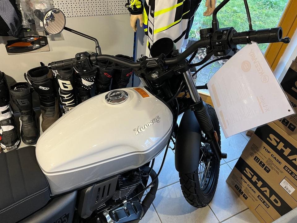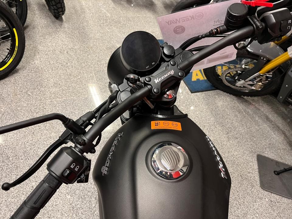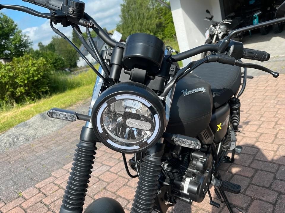 Die Keeway X-Light 125 ist ein moderner Cafe-Racer, der weit uber seiner Gewichtsklasse punktet. Dieses 125-ccm-Motorrad zeichnet sich durch eine Vintage-Asthetik aus, die durch zuverlassige Komponenten, die fur den Einsatz in Stadt und Land optimiert wurden, noch verstarkt wird. Kommen Sie stilvoll an Ihr Ziel und genieen Sie die Fahrt, die Sie in die Vergangenheit zuruckversetzt, indem Sie die Tage der schicken Lederjacken noch einmal erleben.