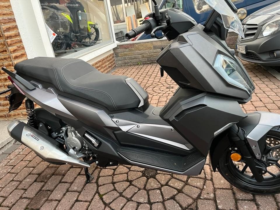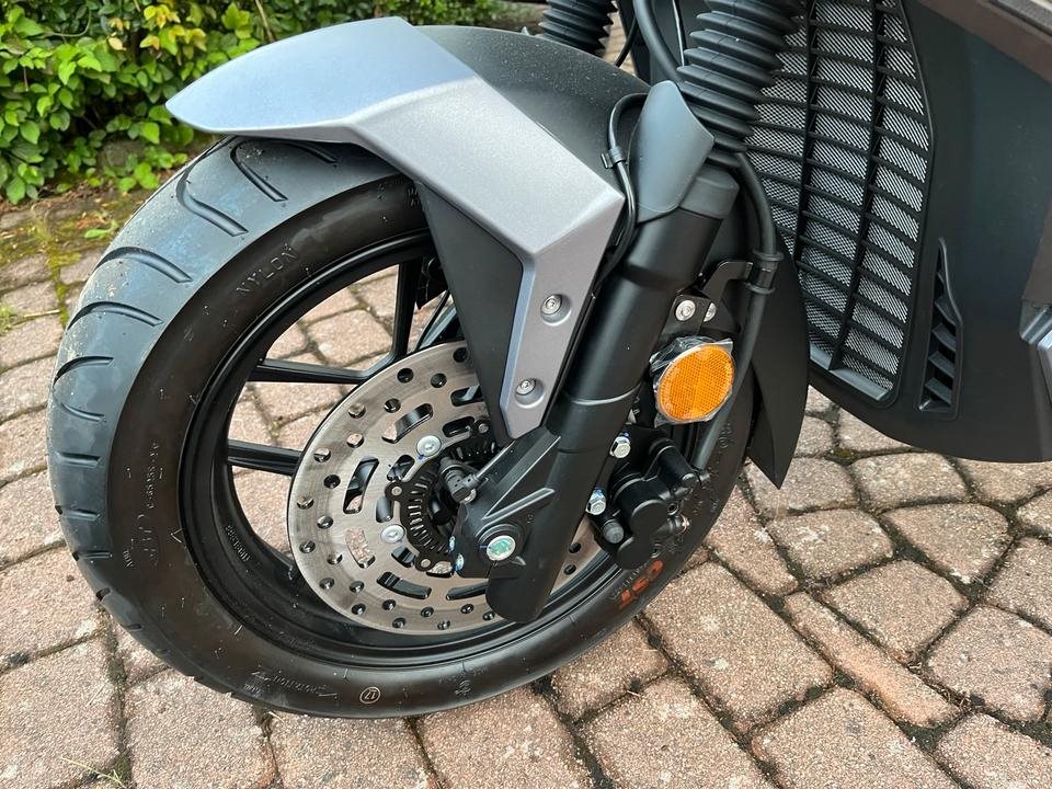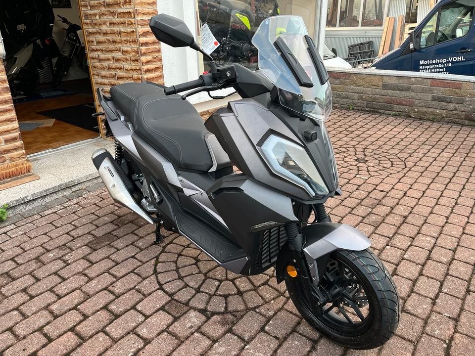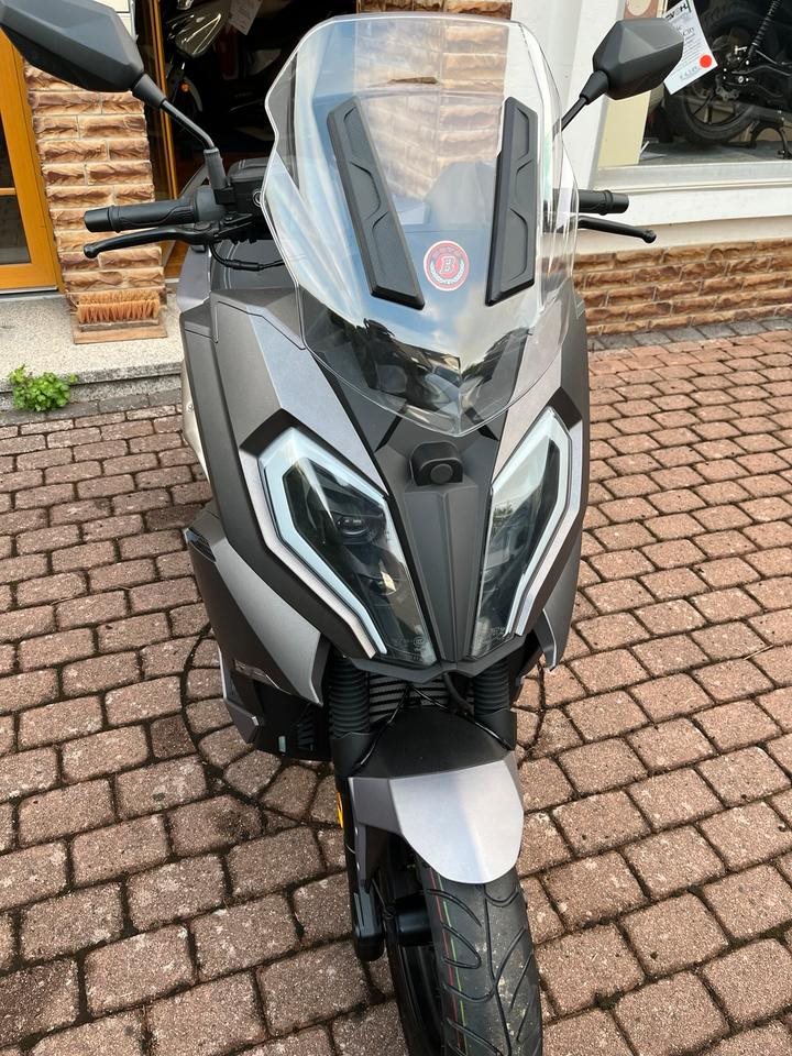 Top sportlicher 125er Roller der bekannten Marke Motobi. Starker 4-Takt Motor mit vollen 15PS. Wassergekuehlt, Elektr. Benzineinspritzung, 4-Ventil Technik, usw. Farbe : Matt Grau. Sportliche Scheibe, grosses Farb Display, Scheibenbremsen, ABS, LED-Licht rundum. Keyless Go, usw.