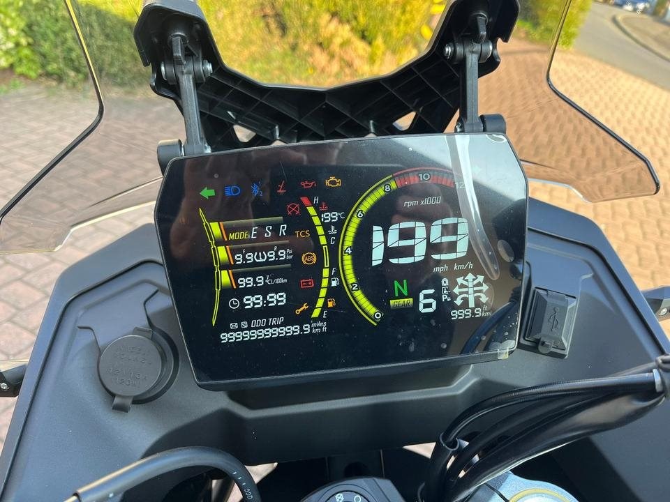 Verschiedene Fahrmodi, Beleuchtete Armaturen, Nissin Bremsen, Speichenräder mit Schlauchlos Metzeler Reifen, Handschützer, usw. gehören zur Serien Ausstattung.
