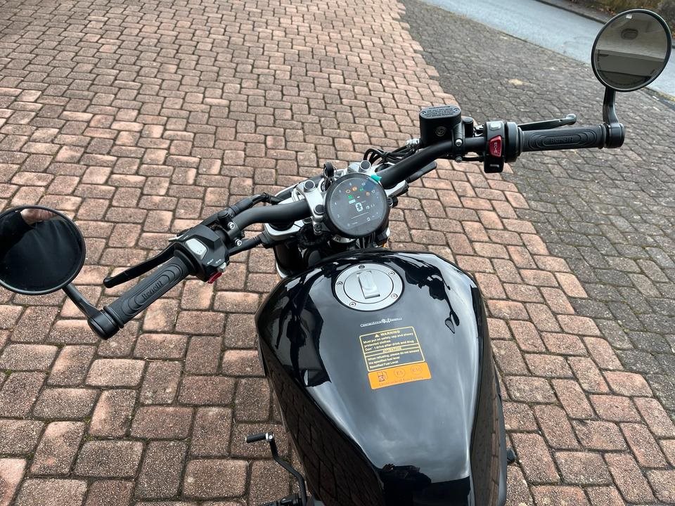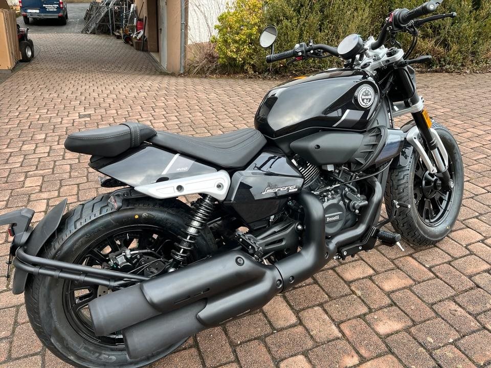 Erstmals verbaut Benelli einen 60-V2-Motor (Euro 5+), der mit Details wie Zierkuehlrippen und einem transparenten Luftfilter auch optisch Akzente setzt. Technisch ueberzeugt die Bobber mit Riemenantrieb, Traktionskontrolle, Lenkerendenspiegeln und minimalistischem Digitaldisplay. Die vorverlegten Fussrasten sorgen fuer eine entspannte Cruiser-Sitzposition.