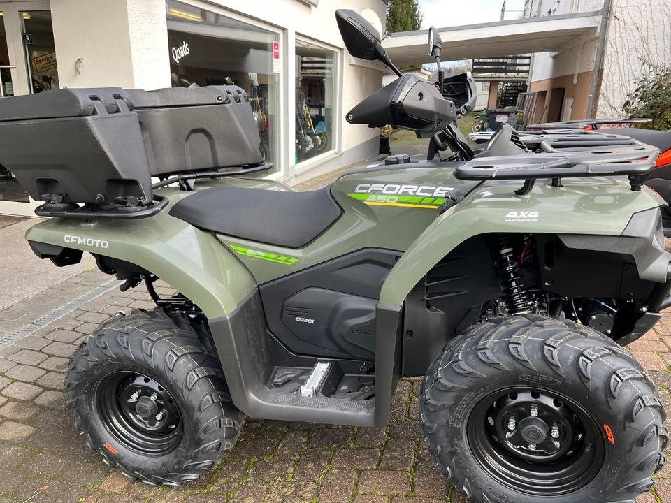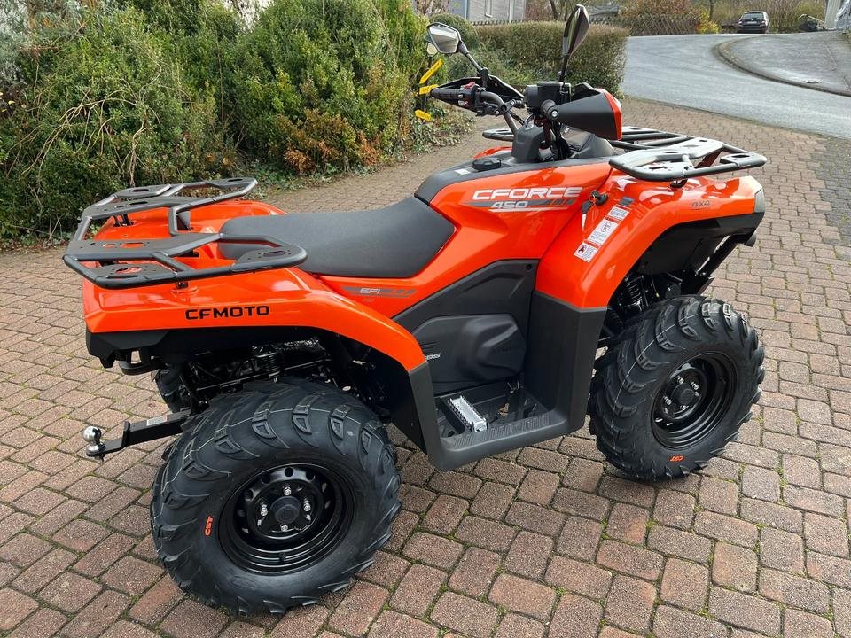 Top ATV vom Marktführer CFMoto in der 450er Klasse. Lieferbar in den Farben Orange-Metallic, Hunter Grün und Schwarz. Jetzt ist das neue Modell eingetroffen mit EPS (Servolenkung) ,Alu Felgen und abschließbaren Tankdeckel. Top Ausstattung, Gasdruckfederbeine, Scheibenbremsen mit ABS, T3b Zulassung, 17 Liter Tank, Gepäckträger hinten und vorne, Seilwinde, LCD-Display, USB-Anschluß, Anhängerkupplung, 4-Jahre Garantie, usw. Wir machen Ihnen gerne ein maßgeschneidertes Finanzierungsangebot. Nach Absprache kann eine Probefahrt gemacht werden. Wir bieten auch den Service nach dem Kauf. In unserem Shop finden Sie eine große Auswahl an Helmen und Bekleidung. Wir freuen uns auf Ihren Besuch.