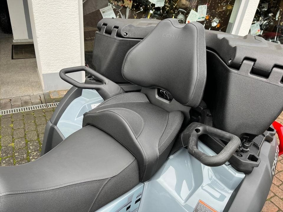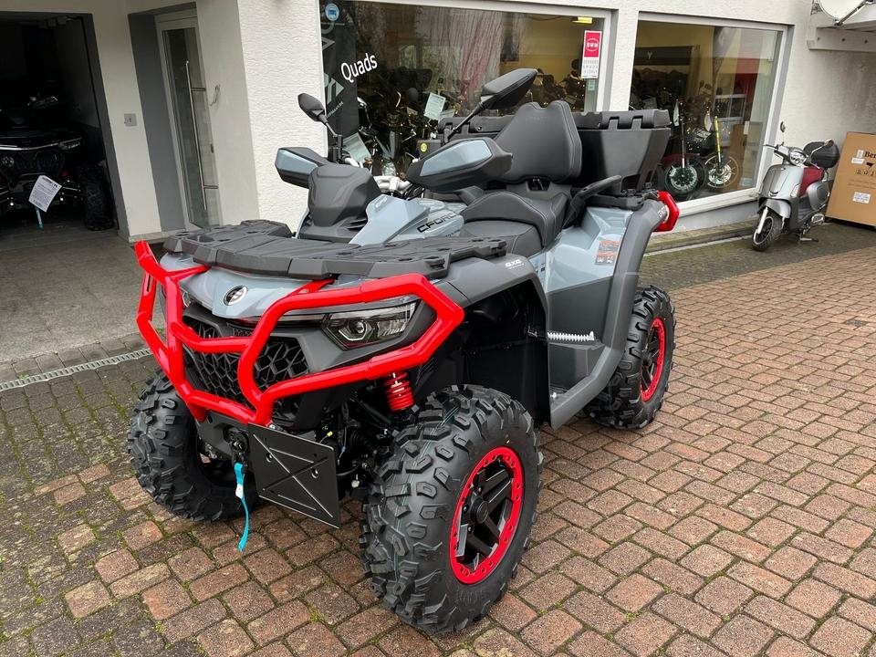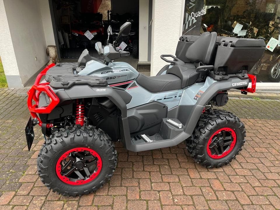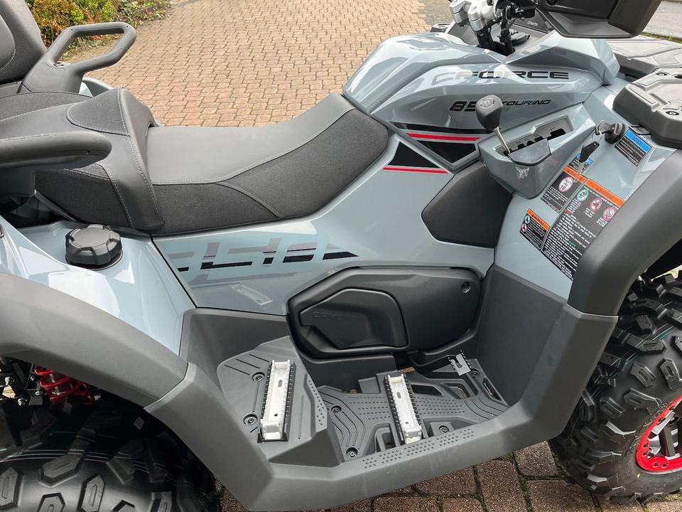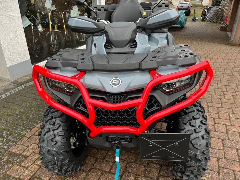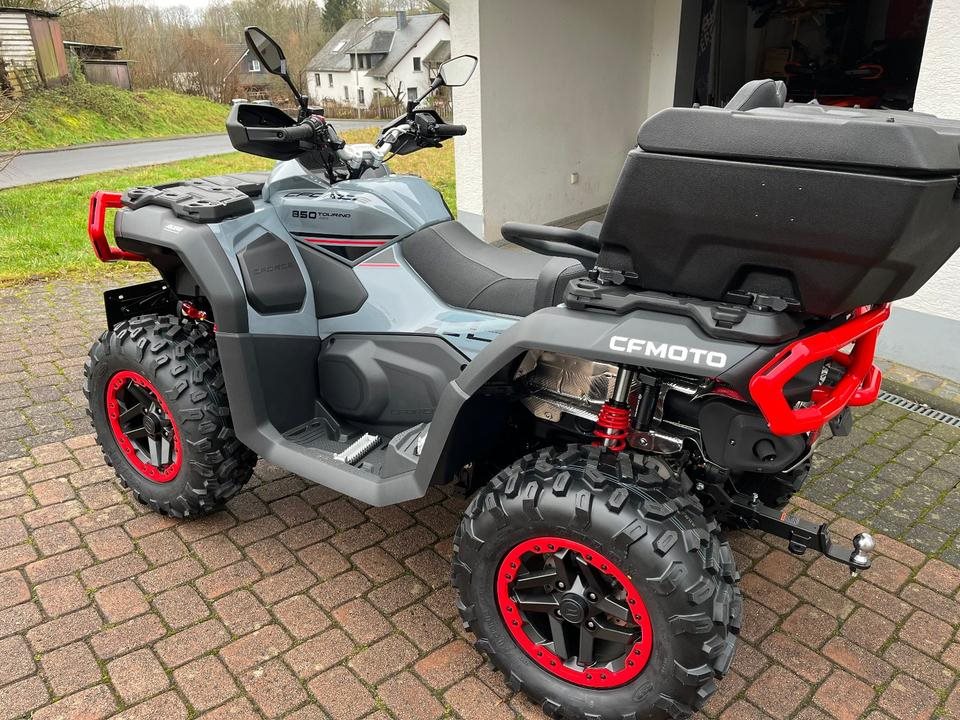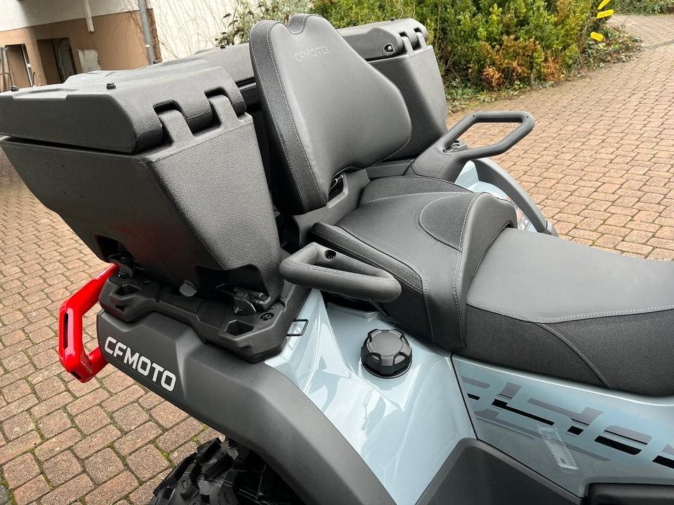 Top ATV des Marktführers CFMoto. Sehr laufruhiger 2-Zylinder V-Motor mit satten 71 PS. Leichgängige Gangwahl, Ride by Wire, Wasserkühlung, EFI, Top Ausstattung : Servo Lenkung, Scheibenbremsen mit ABS an allen Rädern, Differenzial hinten und vorne zum sperren, Zuschaltbarer Allradantrieb, 7-Zoll Farbdisplay, 14 Zoll Alu Felgen, USB Anschluß, Beifahrer Rückenstütze und Haltegriffe, Geäackträger hinten und vorne, Seilwinde mit Syntetic Seil, Gasdruckfederbeine verstellbar, 100Liter Heckbox mit Schnellverschlüssen serienmäßig. Sonderausstattung Farbe Tundra Grey mit roten Beadlock Felgen und Roten Bumper vorne und hinten. Nach Absprache kann gerne eine Probefahrt gemacht werden. Wir machen Ihnen auch gerne ein maßgeschneidertes Finanzierungsangebot. In unserem Shop finden Sie eine große Auswahl an Helmen und Bekleidung. Wir haben alle CFMoto Modelle auf Lager.