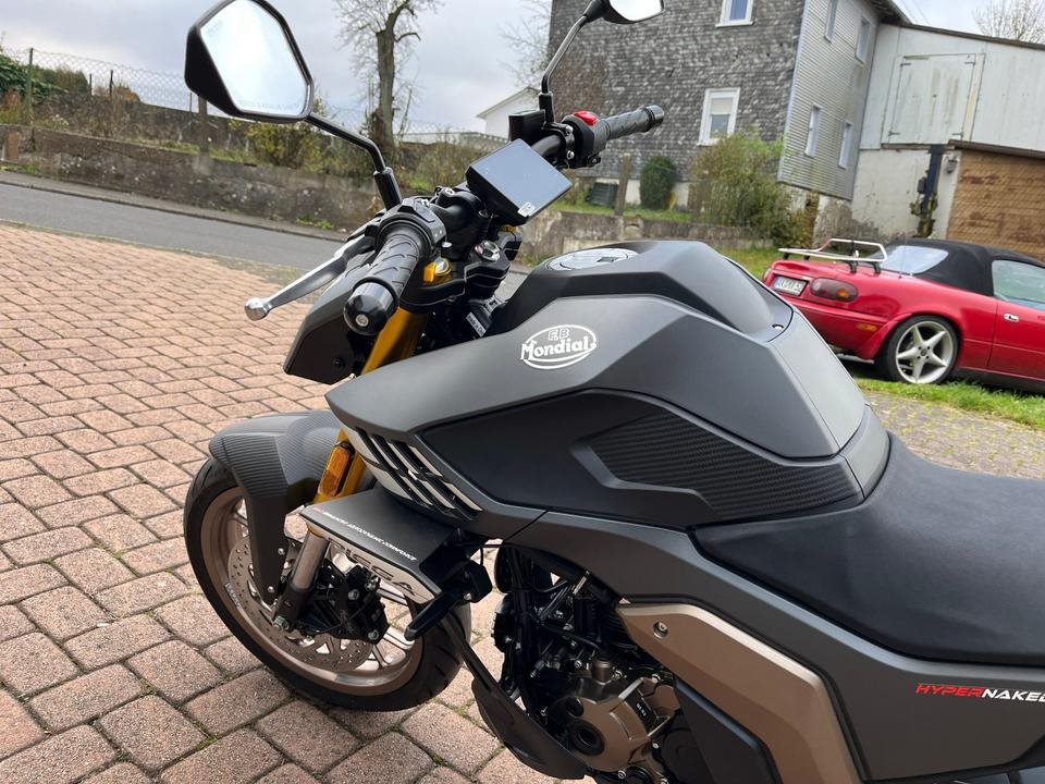 Die PIEGA 125 erweitert als Naked Bike das F.B Mondial Line-up und ist mit seinen 125 Kubik auch bestens fuer Einsteiger geeignet. Statt Retro-Look geht es bei der PIEGA bei der Linienfuehrung kantig und modern zu, was dem Motorrad einen energetischen Streetfighter Charakter verleiht.