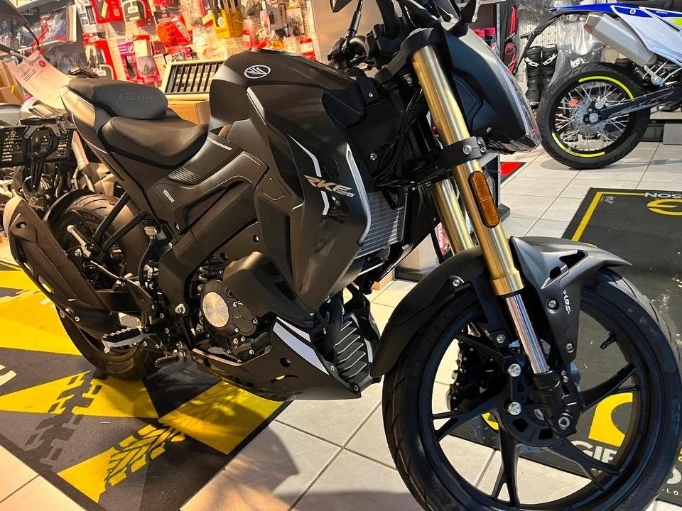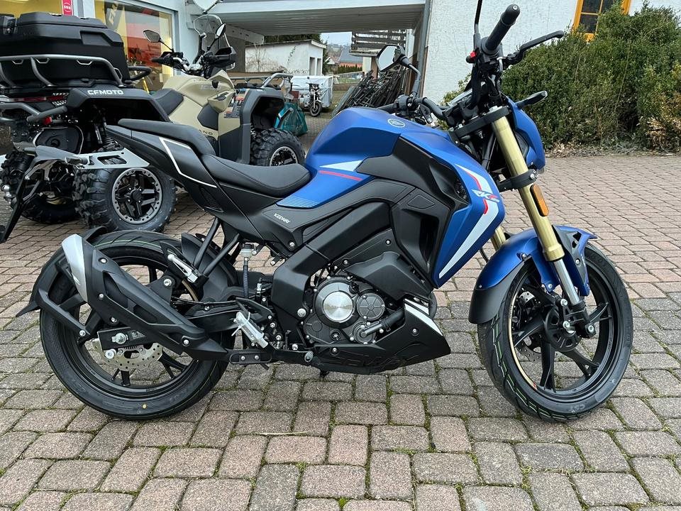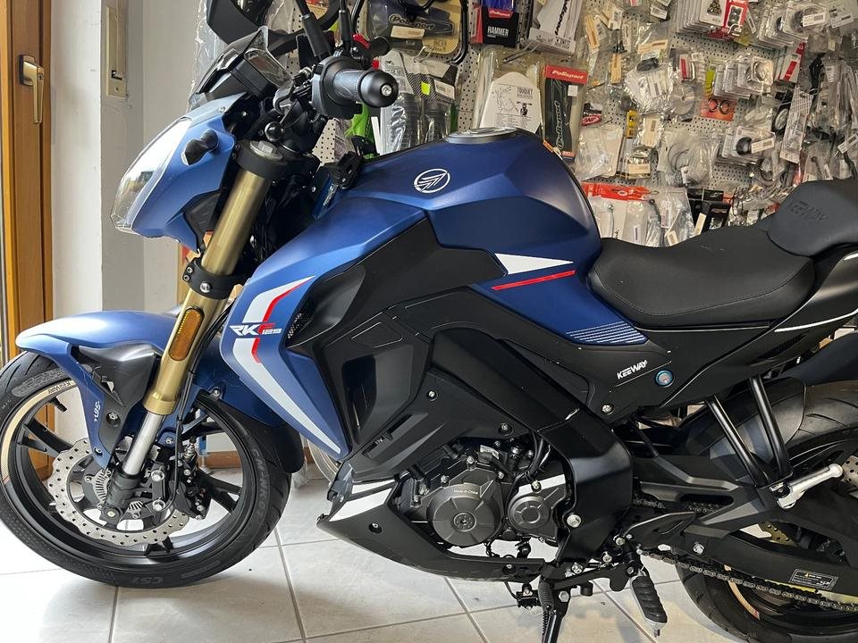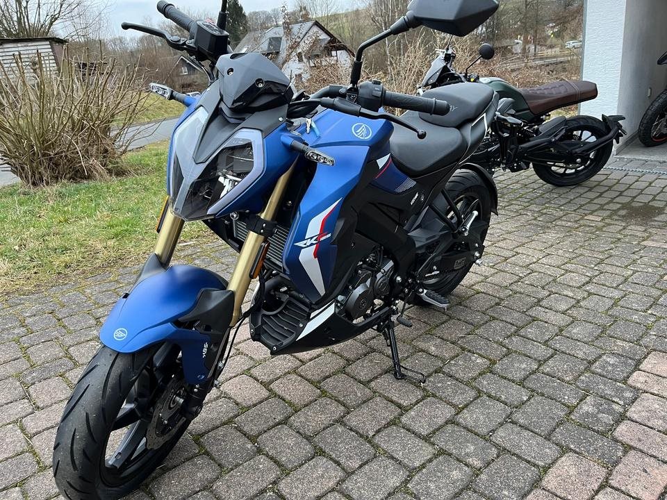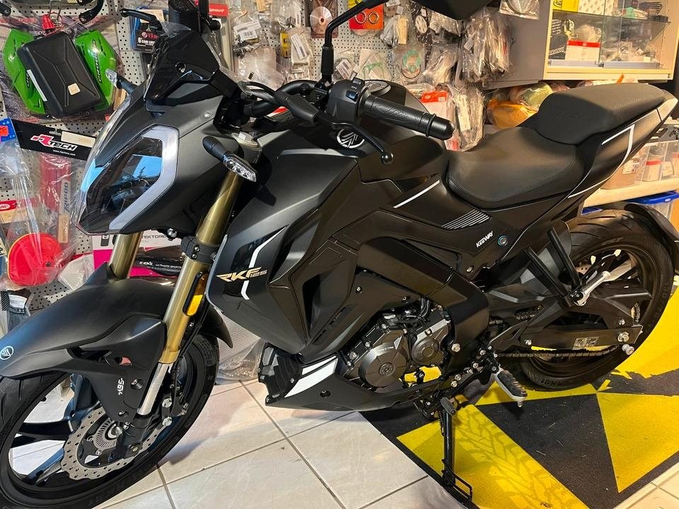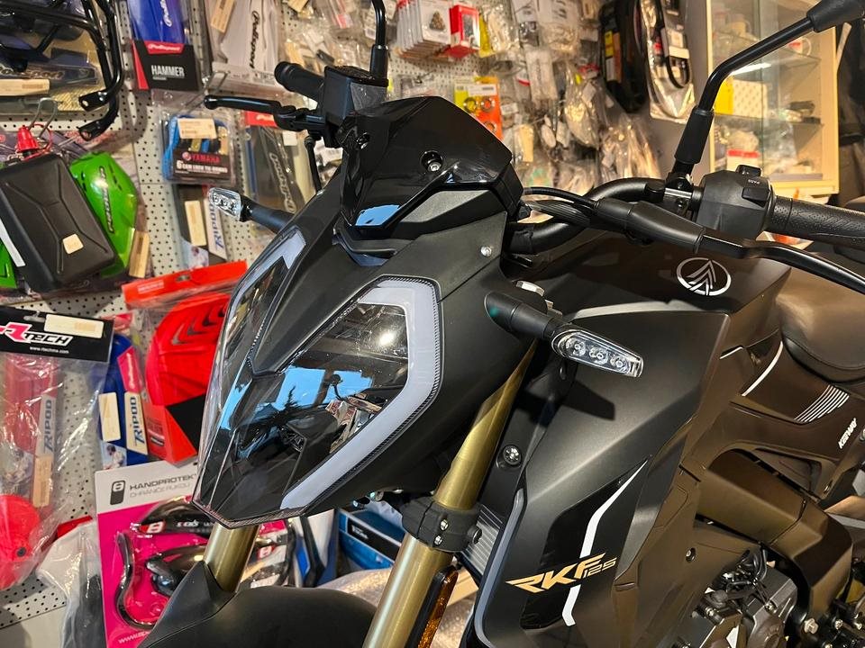 Die KEEWAY RKF 125 E5 ABS ist bereit fuer die Landstrasse. Egal ob bei Tag oder Nacht - die RKF laesst sich extrem dynamisch und leicht durch die City steuern. Als eines der beliebtesten Naked Bikes auf dem Markt, bietet sie neben ihrem brillantem Design serienmaessiges ABS Bremssystem. Relativ niedrige Sitzhoehe, Super Ausstattung, Durchzugstarker 4-Takt Motor. LED Beleuchtung rundum, Scheibenbremsen, Digitalcockpit mit allen Infos einschliesslich Ganganzeige. Top Qualitaet.
