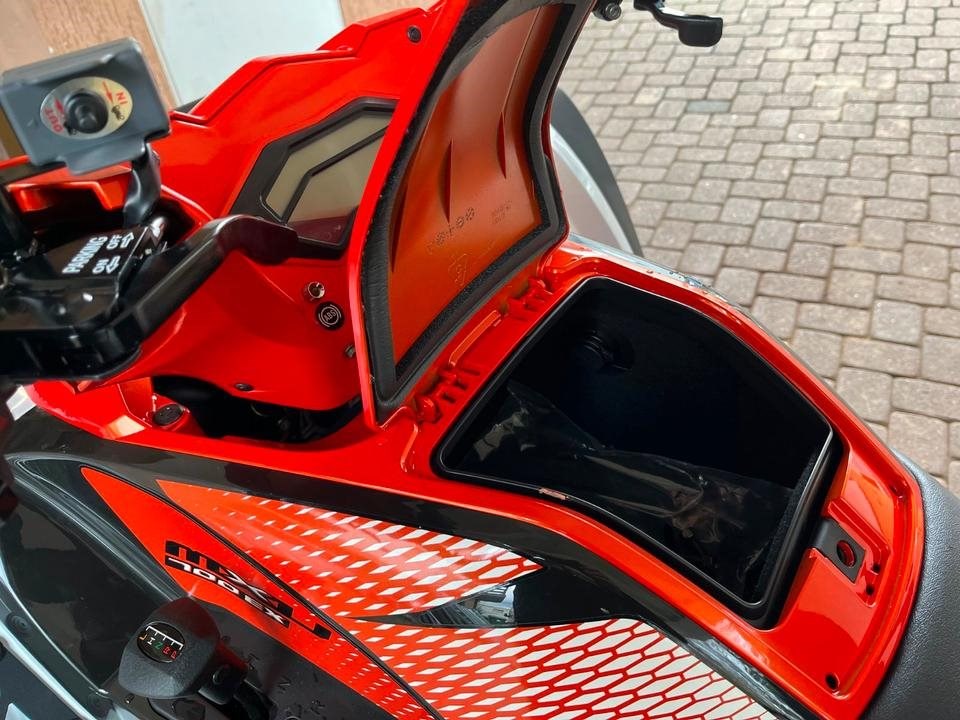 Mehr Top-Speed (98 km/h), da es dank des serienmäßigen ABS-Systems in der "offenen" EU-Traktor-Klasse fährt. Mehr Sicherheit dank der neuen ABS-Technik aus dem Auto-Sektor. Mehr Schutz mittels muskulöser Verkleidungen. Mehr ausgewogene Balance und mehr Stauraum infolge der raffinierten Positionierung des Tanks.
