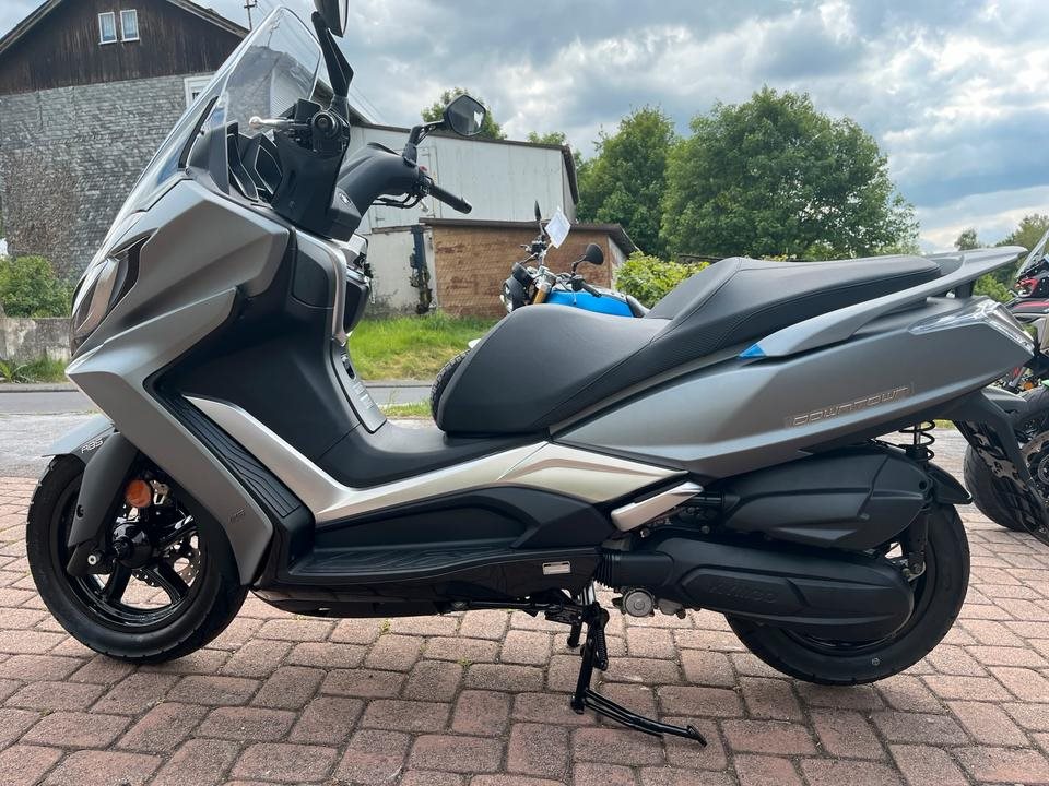 Das DOWNTOWN Modell im KYMCO Rolleraufgebot ob mit 350 oder 125 Kubik erfreut sich seit Jahren größter Beliebtheit und geizt auch in der Neuauflage nicht bei Platz, Komfort, Optik und Fahrspaß. Dank der sportlichen Fahrleistung, einem exzellenten Kurvenverhalten und dem geringen Kraftstoffverbrauch ist der dynamische NEW DOWNTOWN aber nicht nur für die Stadt, sondern auch für weitere Strecken und längere Fahrten geradezu prädestiniert. Mit dem NEW DOWNTOWN setzt Kymco neue Maßstäbe im Bereich der 125er Touring Fahrzeuge, was Komfort, Technik, Verarbeitung und Design betrifft. Der NEW DOWNTOWN 125i ABS bietet alle Vorzüge seines großen Bruders, dem NEW DOWNTOWN 350i ABS, und punktet mit großzügigem Platzangebot für Fahrer und Sozius, jede Menge Leistung für ein 125er Modell und modernster Technik in der Einsteigerklasse. Die Neuauflage des DOWNTOWN schafft den Spagat Fahrkomfort auf höchstem Niveau und sportlicher Agilität mit Leichtigkeit. Er verfügt über exzellentes Kurvenverhalten, anatomisch geformte Sitzbänke, ein großzügiges Staufach, zwei Handschuhfächer mit USB-Anschluss, taghelle Scheinwerfer und vieles mehr. Wir machen Ihnen gerne ein maßgeschneidertes Finanzierungsangebot. In unserem Shop finden Sie eine große Auswahl an Helmen und Bekleidung.