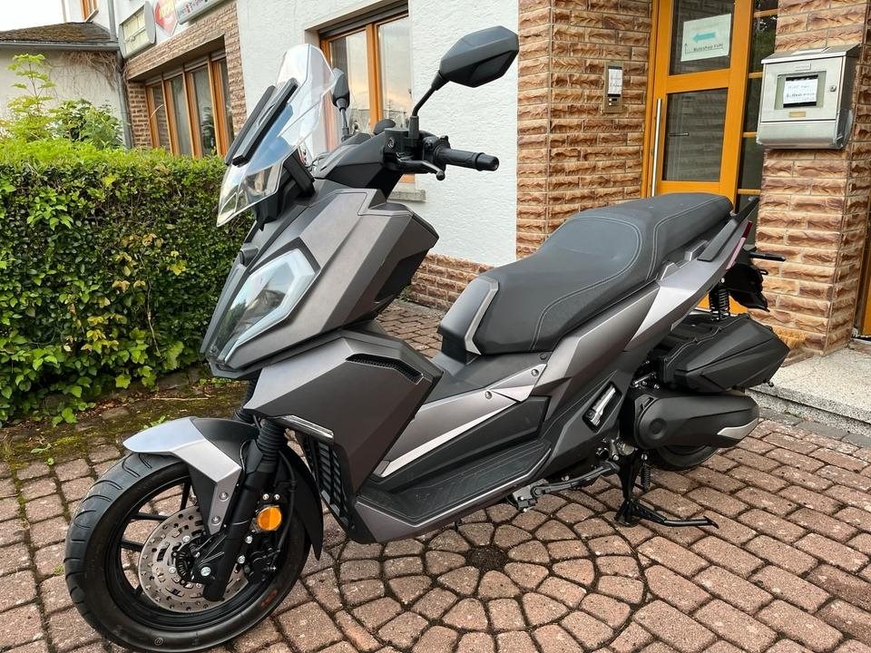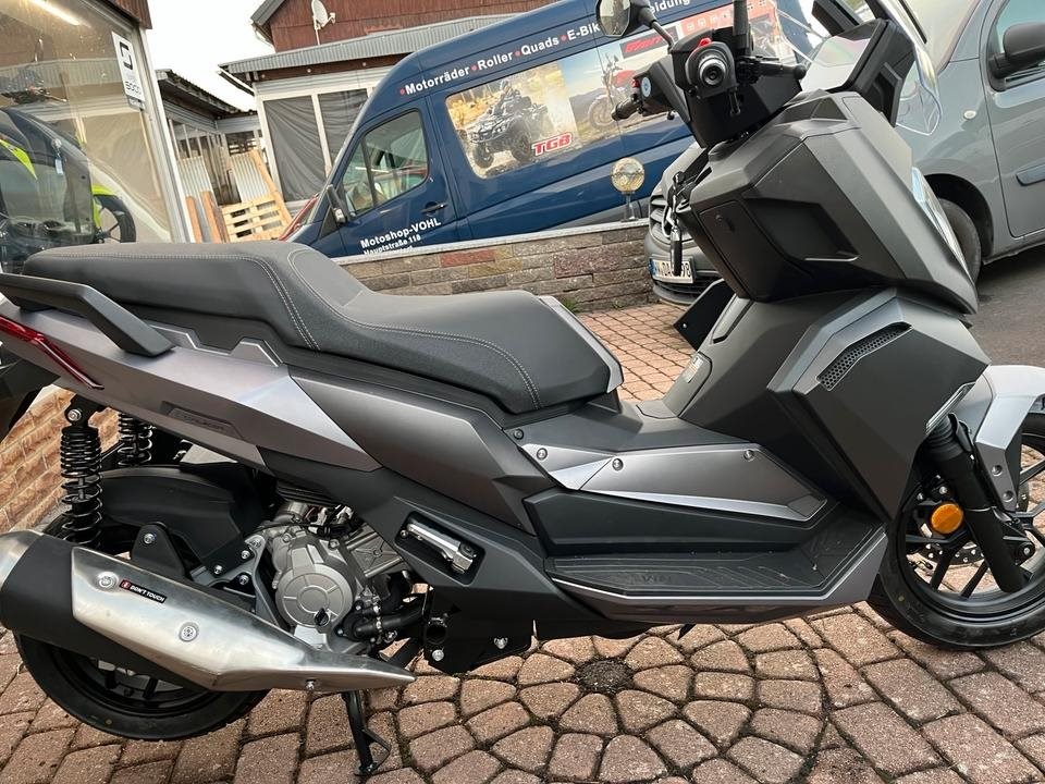 Top sportlicher 125er Roller der bekannten Marke Motobi. Starker 4-Takt Motor mit vollen 15PS. Wassergekuehlt, Elektr. Benzineinspritzung, 4-Ventil Technik, usw. Farbe : Matt Grau. Sportliche Scheibe, grosses Farb Display, Scheibenbremsen, ABS, LED-Licht rundum. Keyless Go, usw.