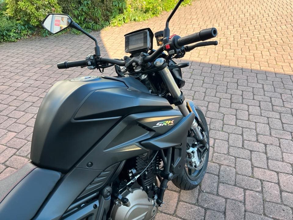 Top Nackedbike der bekannten Marke QJMotor. 700 cm, 73 PS, 2-Zylinder Reihenmotor, Wassergekühlt. 2 in 1 Auspuff, LED Beleuchtung rundum, Upside-Down Gabel, USB Steckdose, Farbiges TFT Display mit allen Funktionen, Alu Schwinge, 15Liter Tank, 195kg Leergewicht, 3 Jahre Herstellergarantie. Nach Absprache ist eine Probefahrt möglich. Wir machen Ihnen gerne ein maßgeschneidertes Finanzierungsangebot. In unserem Shop finden Sie eine große Auswahl an Helmen und Bekleidung.