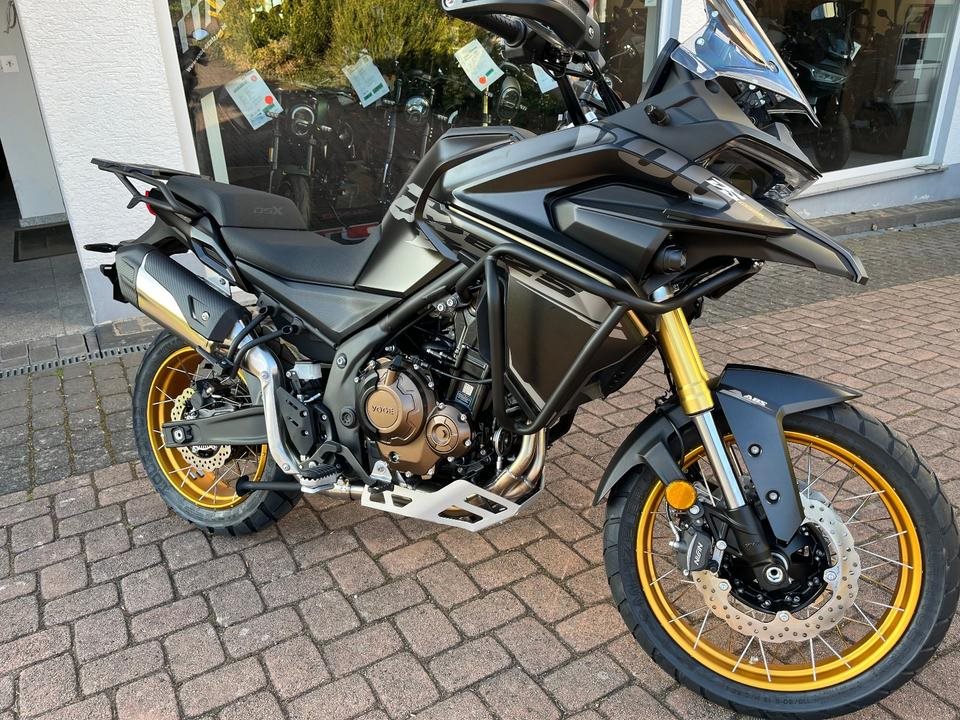 Die VOGE DS625X vereint moderne Technik mit Abenteuertauglichkeit und bietet eine beeindruckende Kombination aus Leistung, Komfort und Vielseitigkeit. Der 581-ccm-Zweizylindermotor mit 64 PS liefert kraftvolle Performance auf jedem Terrain. Die 19- und 17-Zoll-Raeder, die KYB-Federung mit 220 mm Bodenfreiheit und abschaltbares ABS machen sie ideal fuer anspruchsvolle Offroad-Touren.